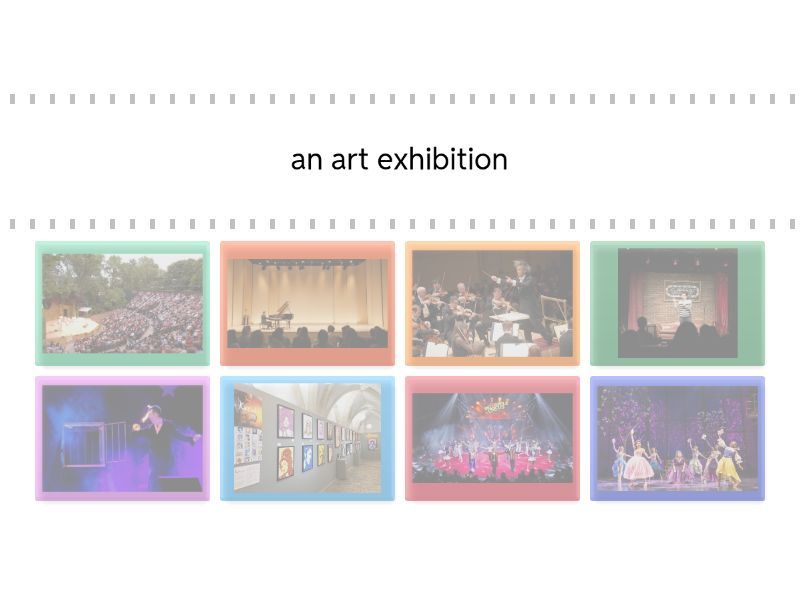 an art exhibition, a circus, a classical concert, a comedy club, a magic show, a musical, an open-air theatre, a piano recital,