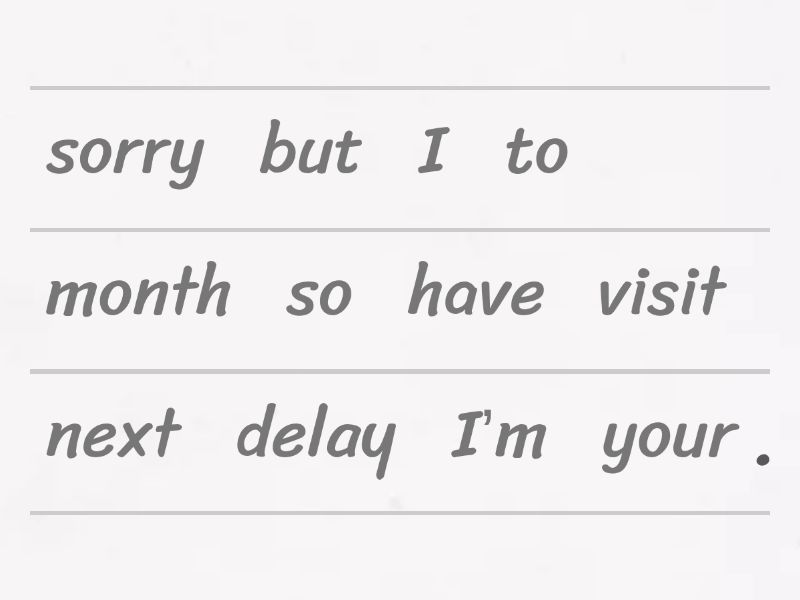 I’m so sorry but I have to delay your visit next month. , I’ll be very busy with a school science project., Would the following month be convenient for you? , I’ll be free then to show you around my city!,