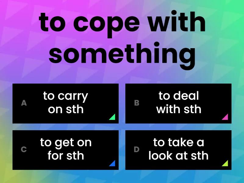 1) to cope with something a) to carry on sth b) to deal with sth c) to get on for sth d) to take a look at sth 2) humanities a) people b) victims c) civilisation d) the study of literature 3) scientist a) researcher b) tutor c) educator d) physician 4) search ........... / wyszukiwarka a) browser b) portal c) engine d) web 5) space .......... / prom kosmiczny a) prom b) plane c) rocket d) shuttle 6) ......... the volume / pogłaśniać a) turn out b) turn up c) turn on d) turn over 7) to collapse  a) to fail b) to violate c) to kick off d) to put down 8) liquid is the opposite of ____ a) water b) planet c) solid d) land 9) outcome a) result b) leave c) react d) open 10) _____ notes / robić notatki a) take  b) do c) have d) write 11) ciśnienie a) pressure b) oppression c) pression d) prescription 12) badanie kosmosu a) universe search b) space obduction c) universal research d) space exploration 13) nie móc się obejść bez czegoś a) cannot go without sth b) can not come without sth c) can not go without sth d) cannot do without sth 14) przechowywać dane na urządzeniu a) save date in a device b) stock date on a machine c) store data on a device d) keep information in an equipment 15) aktualizować oprogramowanie antywirusowe a) update antivirus software b) update antivirus programme c) update antivirus hardware d) update antivirus system 16) wysyłać SMS do kogo a) send sb a short text b) text sb c) send sb a short note d) text sb an e-mail 17) być uzależnionym od czegoś a) be accused of sth b) be established for sth c) be addicted to sth d) to take a look at sth 18) domorosły krytyk a) household critic b) home-made critic c) passive critic d) armchair critic 19) na wystawie a) on display b) at display c) on shopping-window d) at shopfront 20) ochotnicy a) voluntarys b) voluntries c) voluntarilies d) volunteers