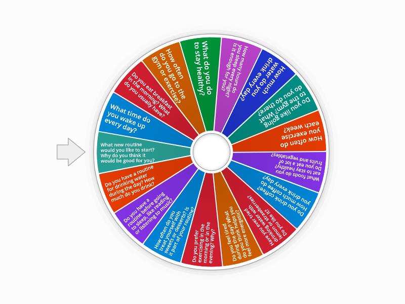 1) What time do you wake up every day? 2) Do you eat breakfast in the morning? What do you usually have? 3) How often do you go to the gym or exercise? 4) What do you do to stay healthy? 5) How many hours do you sleep every night? Is it enough for you? 6) How much water do you drink every day? 7) Do you like going to the gym? What do you do there? 8) How often do you exercise each week? 9) What foods do you eat to stay healthy? Do you eat a lot of fruits and vegetables? 10) Do you drink coffee? How much coffee do you drink every day? 11) Have you ever tried drinking water with lemon or strawberries? Do you like it? 12) Do you feel tired during the day? What do you think helps you feel more energetic? 13) Do you prefer exercising in the morning or in the evening? Why? 14) How often do you treat yourself with sweets or desserts? Is it part of your routine? 15) Do you have a routine before going to sleep, like reading or listening to music? 16) Do you have a routine for drinking water during the day? How much do you drink? 17) What new routine would you like to start? Why do you think it would be good for you?