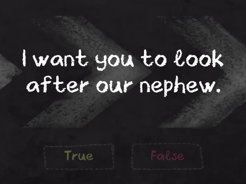 True: I want you to look after our nephew., I looked through all the files but found nothing., Does it look like I'm happy?, I usually look up the words I don't know when I'm reading., I'm looking for a nice shirt that goes with these shoes., There's something in front of us. Look out., False: Can you look after this word? I don't understand the meaning., You should look up your notebook before giving it to me., She looks her mother., Hey! Look for! There's a car coming!,
