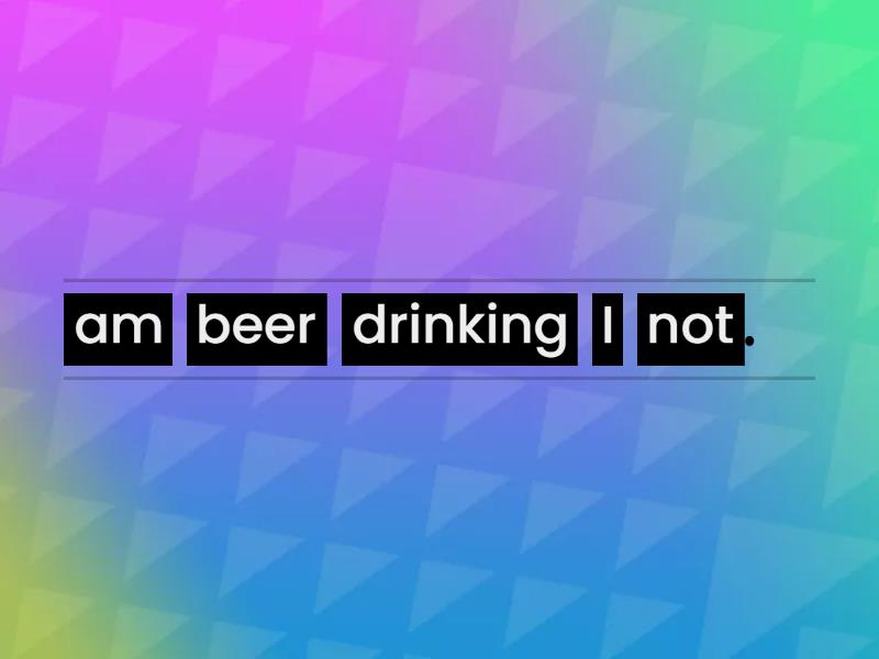 I am not drinking beer., I am drinking cola., We are not having a lunch., We are having a break., You are not learning., You are watching TV., She is not doing her homework., She is talking to her friend., They are not sleeping., They are going to the party., He is not looking at his mum., He is looking at the floor., It is not eating sausages., It is eating pet food.,