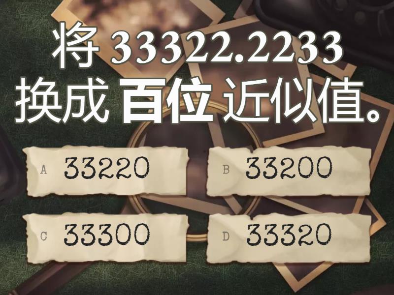 1) 把 0.6587 写成 百分位小数 近似值。 a) 0.65 b) 0.67 c) 0.66 d) 0.70 2) 把 0.6587 写成 千分位小数 近似值。 a) 0.658 b) 0.660 c) 0.659 d) 0.657 3) 哪项是 82.269 的 十分位 近似值? a) 82.27 b) 82.3 c) 82.2 d) 82.30 4) 82.269 中的数字 6 是 _________ 数位? a) 个位 b) 十分位 c) 千分位 d) 百分位 5) 把 0.8315 写成 千分位小数 的近似值。 a) 0.831 b) 0.813 c) 0.830 d) 0.832 6) 把 3.4593 换成 十分位小数 的近似值。 a) 3.5 b) 3.4 c) 3.46 d) 3.45 7) 将 0.3875 换成 千分位小数 近似值。 a) 0.387 b) 0.390 c) 0.388 d) 0.385 8) 将 3002.3805 换成 千分位小数 近似值。 a) 3002.380 b) 3002.381 c) 3002.385 d) 3002.390 9) 3002.3805 中,8的 数值 是 ? a) 0.008 b) 0.08 c) 0.8 d) 8 10) 将 33322.2233 换成 百分位小数 近似值。 a) 33222.22 b) 33222.23 c) 33322.22 d) 33322.23 11) 将 33322.2233 换成 百位 近似值。 a) 33220 b) 33200 c) 33300 d) 33320 12) 把 10100.01011 写成 二位小数 近似值。 a) 10010.01 b) 10110.01 c) 10100.01 d) 10011.01 13) 把 10100.01011 写成 千分位小数 近似值。 a) 10010.010 b) 10110.010 c) 10100.010 d) 10011.010 14) 12345678 中,如果 6 是 十分位,请问小数点该标在哪儿? a) 123456.78 b) 12345.678 c) 1234.5678 d) 123.45678 15) 12345 中,如果 5 是 千分位,请问小数点该标在哪儿? a) 12345 b) 1234.5 c) 123.45 d) 12.345 16) 13579.246 数字中,数字 4 是_________数位。 a) 十位 b) 百位 c) 十分位 d) 百分位 17) 13579.246 数字中,数字 5 是_________数位。 a) 十位 b) 百位 c) 千位 d) 万位 18) 2468.13 数字中,数字 1 是_________数位。 a) 个位 b) 十分位 c) 百分位 d) 千分位