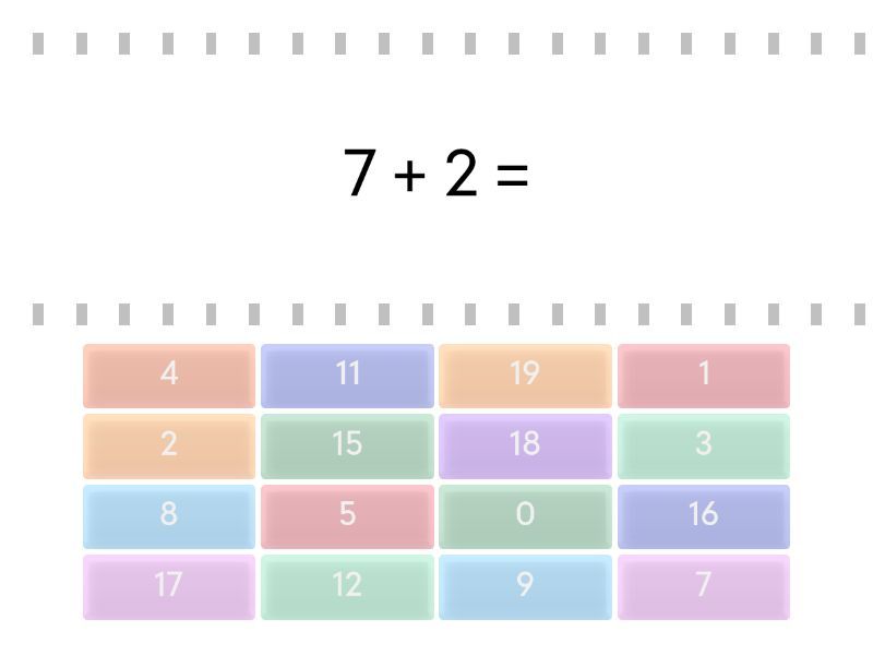 9 - 7 + 2 =, 1 - 1 + 0 =, 19 - 14 + 5 =, 15 - 10 + 5 =, 7 - 4 + 3 =, 11 - 3 + 8 =, 3 - 2 + 1 =, 4 - 3 + 1 =, 18 - 18 + 0 =, 8 - 2 + 6 =, 5 - 10-5, 2 - 9-7, 0 - 4-4, 17 - 20-3, 16 - 20-4, 12 - 20-8,