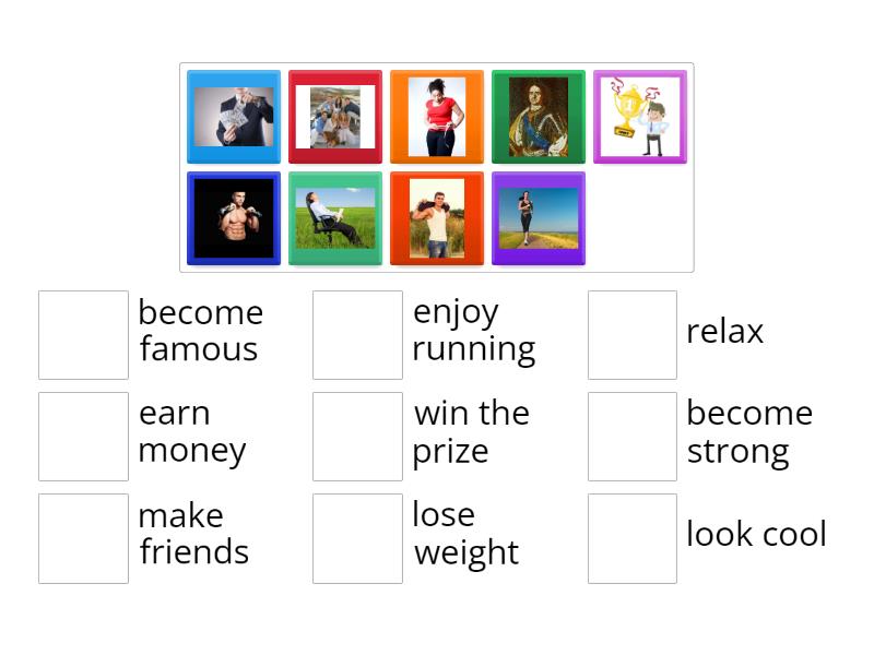 make friends, relax, become strong, lose weight, look cool, earn money, enjoy running, win the prize, become famous,