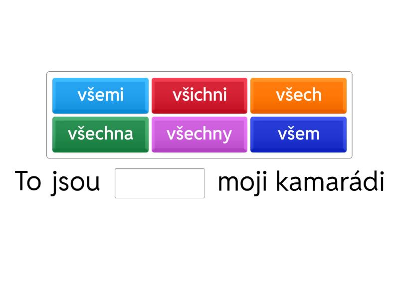 To jsou ____ moji kamarádi Mluvili jsme spolu o ____ problémech Mám rád ____ lidi Diskutovali jsme o ____ možnostech Chci vidět ____ města na světě ____ dětem dám dárek Přečtu ____ knihy v knihovně ____ studenti už jsou ve třídě Jdu na party se ____ kamarády. Znám v domě ____ sousedy Byl jsem na návštěvě u ____ příbuzných