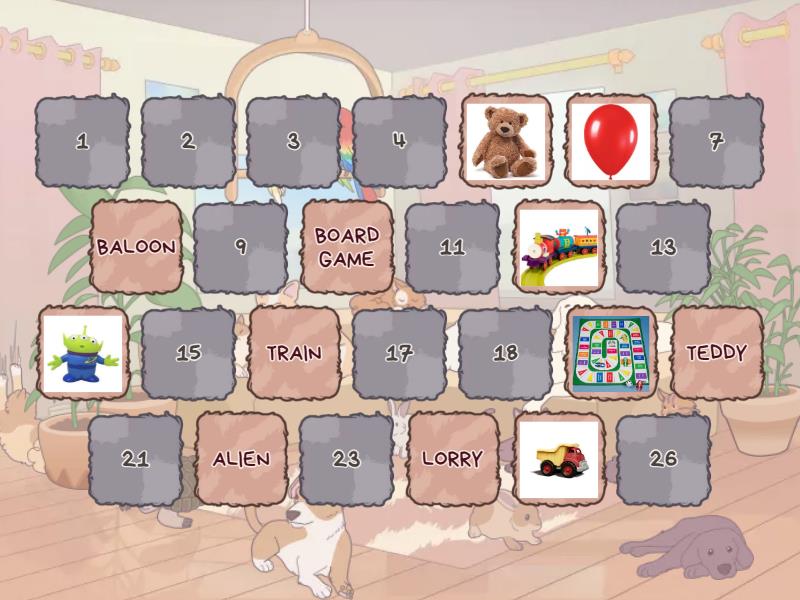 BALOON, TRAIN, ALIEN, TEDDY, BOARD GAME, LORRY, KITE, ROBOT, DOLL, PLANE, BOAT, BIKE, BALL,