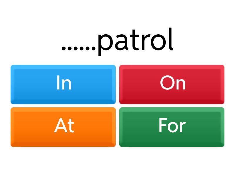 1) ......patrol a) In b) On c) At d) For 2) .......general a) In b) At c) For d) Of 3) ....... all levels a) On b) At c) For d) With 4) To come ....... an interview a) To b) On c) At d) For 5) A day ....... the life of a) Of b) In c) At d) On 6) Under cover ...... darkness a) Of b) In c) For d) On 7) To have experience ..... doing smth a) At b) For c) In d) With 8) To look ....... evidence a) At b) For c) After d) On 9) The position ......ski instructor a) With b) For c) On d) Of 10) To prepare ......work a) To b) For c) At d) With 11) To speak ...... public a) On b) At c) For d) In 12) ..........the force a) With b) On c) For d) At 13) Years ........ training a) Of b) For c) With d) In 14) To be late ...... work a) In b) On c) At d) For