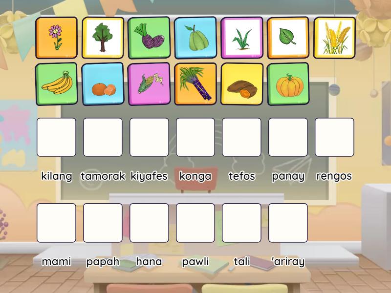 hana, rengos, kilang, papah, konga, 'ariray, panay, pawli, mami, tefos, tali, tamorak, kiyafes,