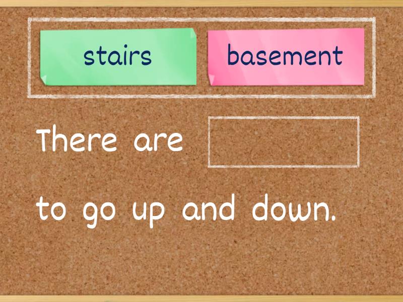 There are ____ to go up and down. Meera moves from the house in the village to the flat in the ____. A small ____ is quiet. The flat has got a beautiful ____ for my plants. The house has got a ____ under the floor for boxes and old toys. There is a ____ to go up and down in the block of flats.