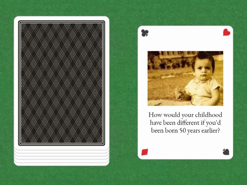 How would your childhood have been different if you'd been born 50 years earlier? , How would you have spent your last weekend if your children hadn't stayed at home with you?, If you hadn't had your own name, how would you have called yourself?, Where would you have gone on holiday last summer if you had had the chance to go anywhere?, What hobby would you have taken up in childhood if you had had a choice then?, What would our life have been like if the USSR hadn't fallen apart?, How would you have felt if you hadn't been able to speak English well?.