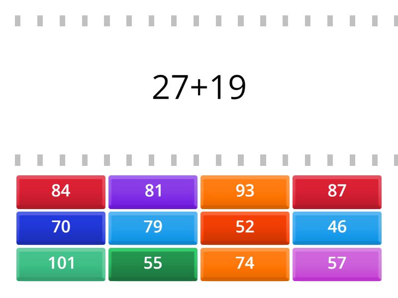 46 - 27+19, 87 - 82+5, 93 - 45+48, 55 - 38+17, 57 - 45+12, 70 - 23+47, 101 - 78+23, 52 - 34+18, 81 - 43+38, 79 - 57+22, 84 - 10+74, 74 - 37+37,