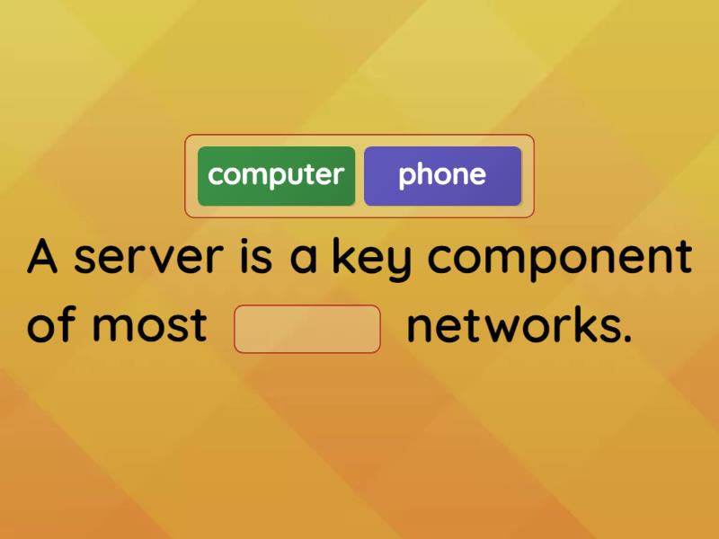A server is a key component of most ____ networks. A server is a large central computer on a ____ that controls access to the network and its resources. A client, in computing terms, is any ____ that connects to a server. Desktops PCs, laptops, tablets and ____ devices can be clients on a network. An ____ device is any device that is not directly controlled by a companies network.