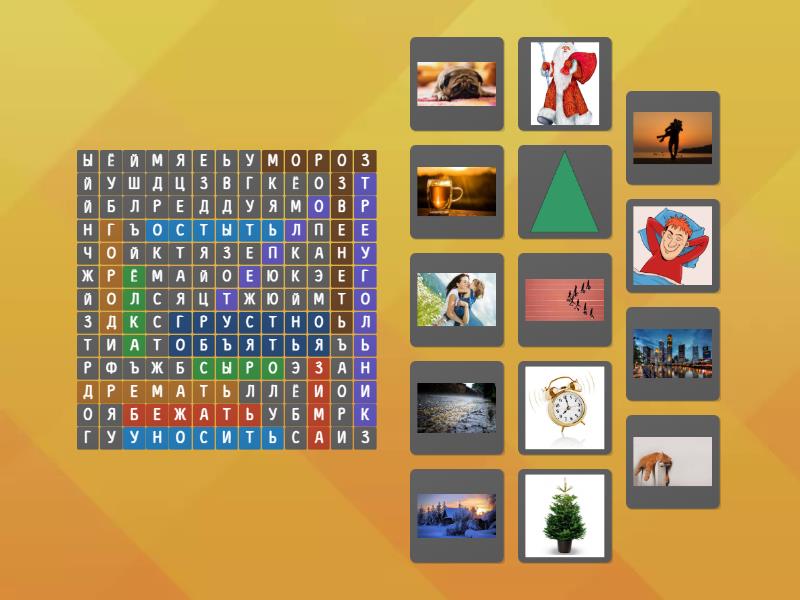 сыро, тепло, зима, уносить, звенеть, объятья, дремать, ёлка, треугольник, бежать, остыть, мороз, грустно, город,