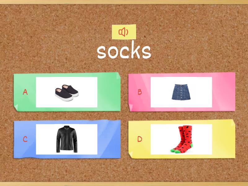 1) jacket a) b) c) d) 2) shoes a) b) c) d) 3) skirt a) b) c) d) 4) socks a) b) c) d) 5) trousers a) b) c) d) 6) T-shirt a) b) c) d)