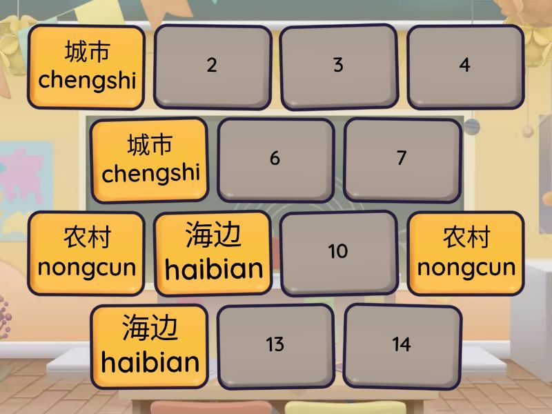 海边 haibian, 农村 nongcun, 城市 chengshi, 山区 shanqu, 英国 yingguo, 中国 zhongguo, 日本 riben,