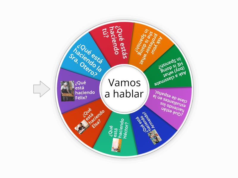 ¿Qué está haciendo la Sra. Otero?, ¿Qué estás haciendo tú?, Ask your professor what she is doing in Spanish?, Ask a classmate (boy) what HE is doing in Spanish?, ¿Qué están haciendo los estudiantes en la clase de español., ¿Qué está haciendo Armando?, ¿Qué está haciendo Héctor?, ¿Qué está haciendo Elsa?, ¿Qué está haciendo Félix?.