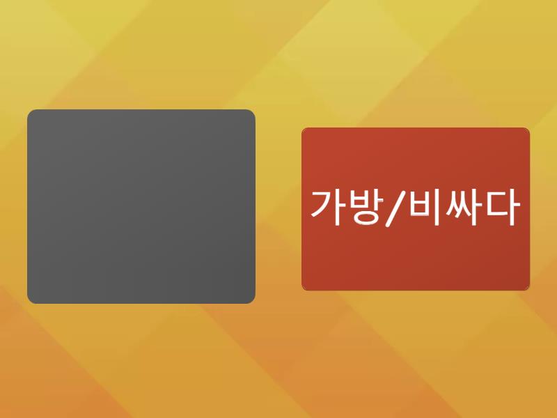 가방/비싸다, 집/크다, 여자/예쁘다, 공/작다, 날씨/춥다, 커피/맛있다, 책/재미있다, 친구 기쁘다.