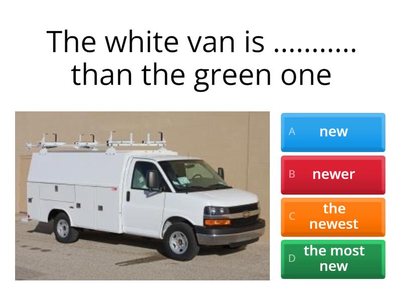 1) The white van is ........... than the green one a) new b) newer c) the newest d) the most new 2) What is the ........ mountain in the world? a) high b) higher c) the most high d) highest 3) Oscar is a little bit .............. cat. a) lazier b) lazy c) cleverest d) more clever 4) Tobogganing is ........ activity for me! a) the exciting b) the more exciting c) the most exciting d) the excitingest 5) This hotel is .......... than that one. a) modern b) the modernest c) moderner d) more modern 6) Kelly's bed is .......... Jack's. a) more comfortable than b) comfortabler than c) more comfortable d) the most comfortable 7) I think motorbike racing is ..............sport. a) the more interesting b) the valuable c) the most dangerous d) the cheaper 8) Mary thinks Art is .......... than sport. a) good b) best c) better d) gooder 9) This is the ......... film I've ever seen. a) worst b) bad c) worse d) baddest 10) The diamonds are more expensive ......... paintings. a) the b) then c) them d) than