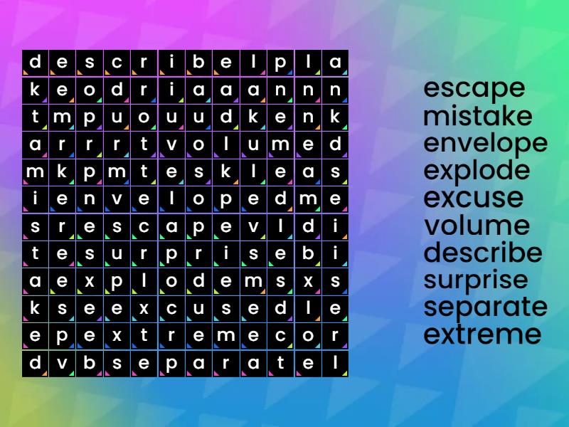 escape, mistake, envelope, explode, excuse, volume, describe, surprise, separate, extreme,