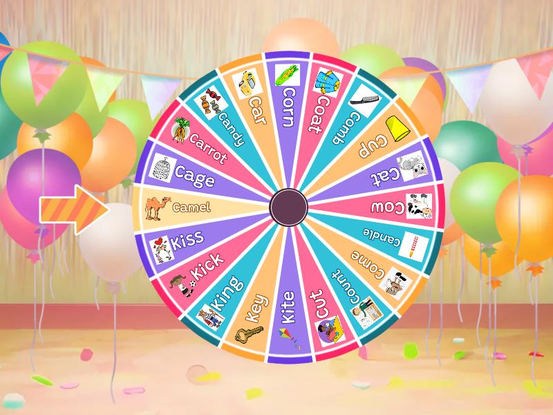 Cage, Carrot, Candy, Car, Corn, Coat, Comb, Cup, Cat, Cow, Candle, Come, Count, Cut, Kite, Key, King, Kick, Kiss, Camel.