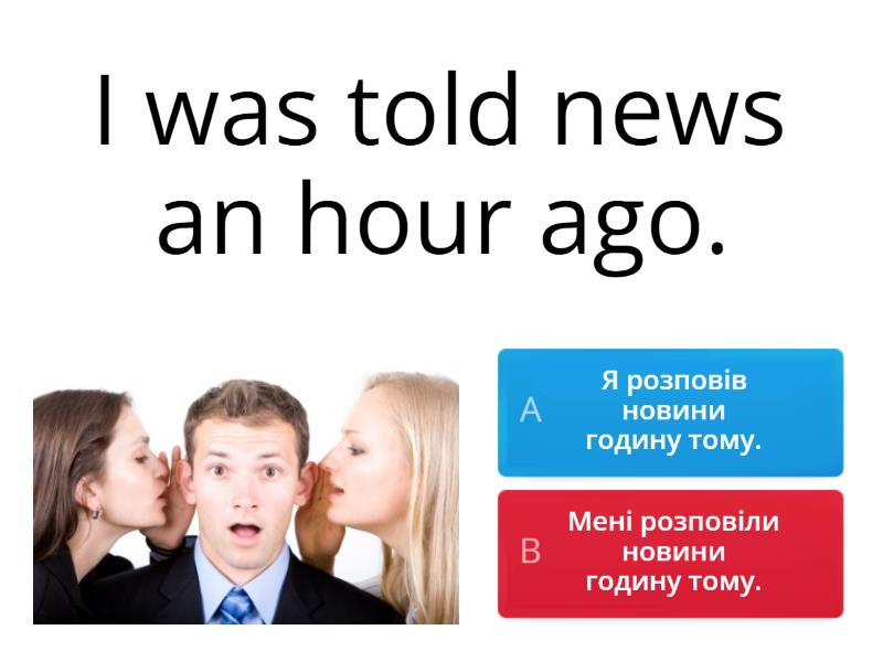 1) I was told news an hour ago. a) Я розповів новини годину тому. b) Мені розповіли новини годину тому. 2) I told news an hour ago. a) Я розповів новини годину тому. b) Мені розповіли новини годину тому. 3) He helped a woman with bags. a) Від допоміг жінці з сумками. b) Жінка допомогла йому з сумками. 4) He was helped with his homework. a) Йому допомогли з домашнім завданням. b) Він допоміг з домашнім завданням. 5) Children ... (not leave) at home alone yesterday. a) wasn`t left b) weren`t leave c) weren`t left 6) Interesting stories ... (tell) by my grandpa. a) are often told b) is often told c) was often told. 7) Bread ... (always sell) in our supermarket. a) is always sells b) were always sold c) is always sold 8) The book ... (return) to the library last Saturday. a) is returned b) was returned c) returned 9) All sweets ... (eat) by children yesterday. a) were eaten b) were ate c) was eat 10) I ... (send) a lot of messages every day. a) was send b) am sent c) sent 11) Tim`s cousin took him to the cinema last week. a) His cousin was taken by Tim to the cinema last week. b) Tim was taken to the cinema by his cousin last week. c) Tim is taken to the cinema by his cousin last week. 12) My granny waters flowers every day in summer. a) Flowers are water every day in summer. b) Flowers were water every day in summer. c) Flowers are watered every day in summer.