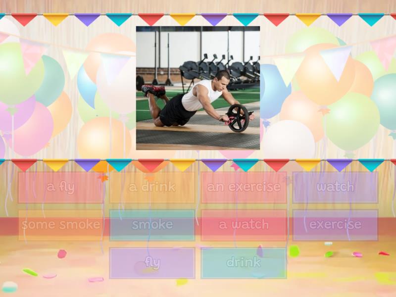 exercise , an exercise , drink , a drink , watch , a watch , smoke , some smoke , fly , a fly ,