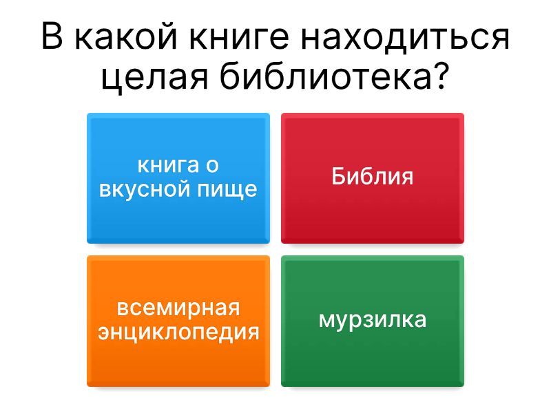 1) В какой книге находиться целая библиотека? a) книга о вкусной пище b) Библия c) всемирная энциклопедия d) мурзилка 2) Имя царя,который захватил Вавилон? a) Саул b) Навуходоносор c) Кир d) Давид e) Ной 3) Какой царь был наделён мудростью от Бога? a) Давид b) Аса c) Ирод Агриппа d) Соломон 4) Кто является отцом лжи? a) Сатана b) Азазела c) Пинокио d) Ниф-Ниф e) Наф_Наф 5) Видимый знак соглашения Иеговы с Ноем?(Бытие 9:16) a) солнце b) луна c) Юпитер d) звёзды e) радуга 6) То,что должно быть кроме оружия у израильтянина-воина?(Второзакония 23:13) a) ведро b) лопатка c) грабли d) пакетик e) тревожный чемоданчик 7) Национальность апостола Павла? a) узбек b) римлянин c) еврей d) фарисей e) перс f) ассириец 8) сын Иакова и Рахили? a) Рувим b) Иосиф c) Семеон d) Стефан 9) Восьмая казнь посланная Богом на Египет?(Исход 10:14) a) Оводы b) Лягушки c) Мошки d) Саранча e) вода - кровь f) град 10) Сын Захарии и Елизаветы?(Луки 1:13) a) Иоанн b) Иаков c) Иуда d) Тимофей e) Пётр f) Иисус