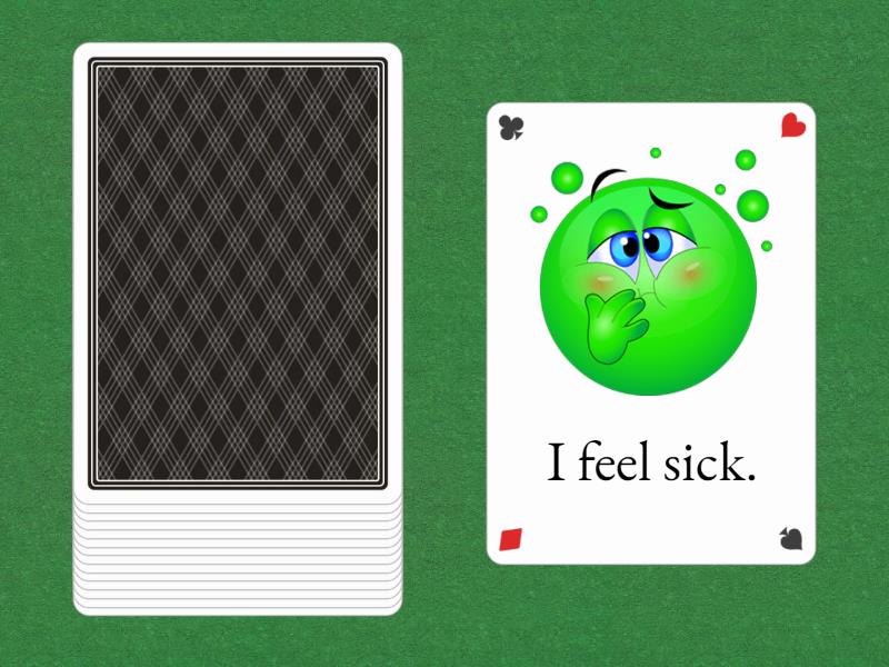 : I am hungry., I am cold., My knee hurts., I have got a cold., I am thirsty., I am bored., I am hot., I have got a spot., My back hurts., I have got a sore throat., I have got sore eyes., I am tired., I have got a toothache., I feel sick., I have got a headache.,