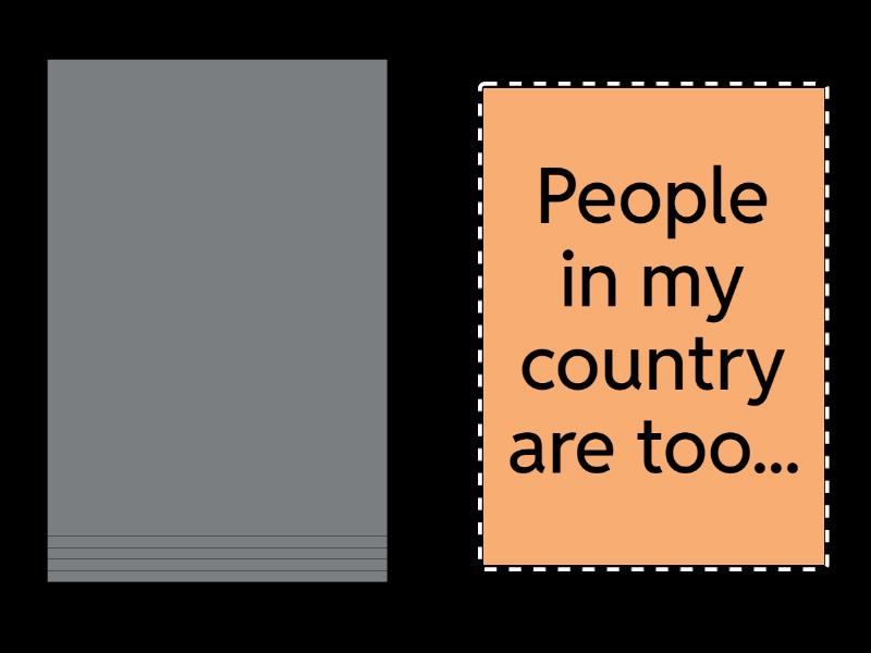 I don't eat enough..., I spend too much money on..., I watch too many..., I drink too much..., I don't do enough..., People in my country are too....