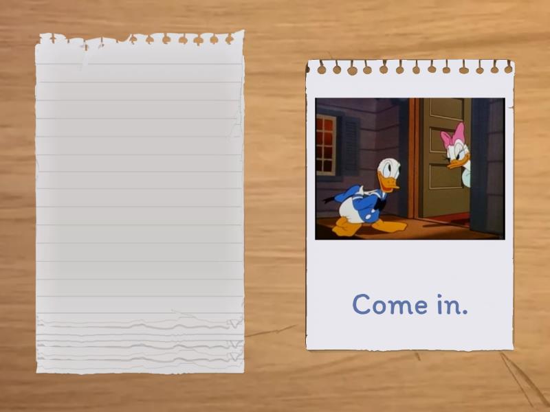 Turn off the TV., Open your books., Don't talk., Don't smoke., Open the door., Don't use your cell phone., Close the window., Come in., Don't take pictures., Don't open the door..
