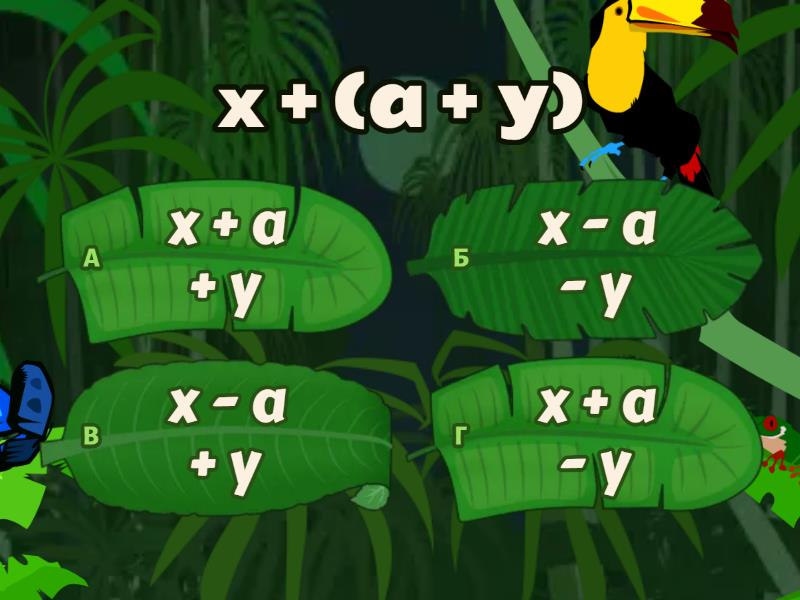 1) х + (a + y) a) x + a + y b) x - a - y c) x - a + y d) x + a - y 2) p - (m + n) a) p - m + n b) p - m - n c) p + m - n d) p + m + n 3) a - (-b + c) a) a + b + c b) a - b + c c) a + b - c d) a - b - c 4) - (a + b) + c a) a + b + c b) a - b + c c) -a - b - c d) -a - b + c 5) a + (-m - n) a) a + m + n b) a - m - n c) a + m - n d) a - m + n 6) a - (t + p) a) a - t + p b) a + t - p c) -a - t - p d) a - t - p 7) (a + b + c) a) a + b + c b) -a + b - c c) a - b - c d) a - b+ c 8) - (d + b - t) a) -d + b+ t b) -d - b - t c) -d - b + t d) d - b + t 9) -(a + b) + (c - d) a) -a + b - c + d b) -a - b + c - d c) a + b + c - d d) a - b - c - d 10) (m+3)-(k-5) a) m+3-k-5 b) -m-3+k+5 c) m+3 - k+5 d) m-3 - k + 5 11) 4 - (a + 2) a) 4 - a + 2 b) -4 - a - 2 c) 4 +a + 2 d) 4 - a-2