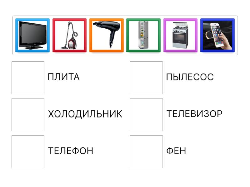 ФЕН, ПЛИТА, ПЫЛЕСОС, ТЕЛЕВИЗОР, ТЕЛЕФОН, ХОЛОДИЛЬНИК,