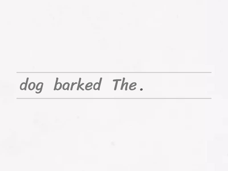 The dog barked., The dog barked loudly., The spotted dog barked loudly., The shy spotted dog barked loudly., The shy spotted dog barked loudly after sunset., The shy spotted dog barked loudly after sunset near the barn., Near the barn, the shy spotted dog barked loudly after sunset., After sunset. the shy spotted dog barked loudly near the barn., Suddenly, the shy spotted dog barked loudly near the barn at sunset.,