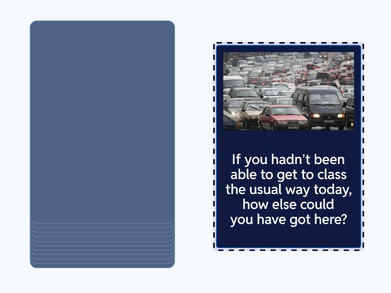 If you hadn’t come to class today, what would you be doing now?, What might your name have been if you had chosen it yourself?, If you had found some money on the way to class, what would you have done with it? , If you hadn’t studied what you did, what other subject might you have chosen?, If you hadn’t decided to take this class, what would you have done instead?, If the weather had been different on the weekend, would it have changed your plans?, How would your life be different if you had been born fifty years earlier?, If you could have got up at any time today, what time would you have chosen?, If you could have gone anywhere on holiday last year, where would you have chosen? , How might your life have been different if you had had more siblings?, If you hadn’t been able to get to class the usual way today, how else could you have got here? , If you had been invited to star on a TV show as a child, would you have done it? .