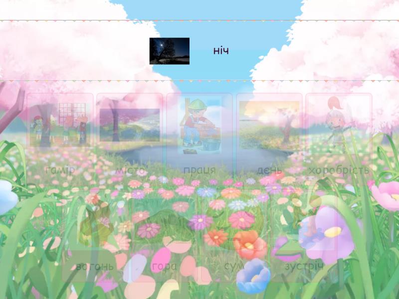 день - ніч, вогонь - вода, сум - радість, місто - село, хоробрість - боягузтво, зустріч - прощання, гора - яма, гамір - тиша, праця - відпочинок,