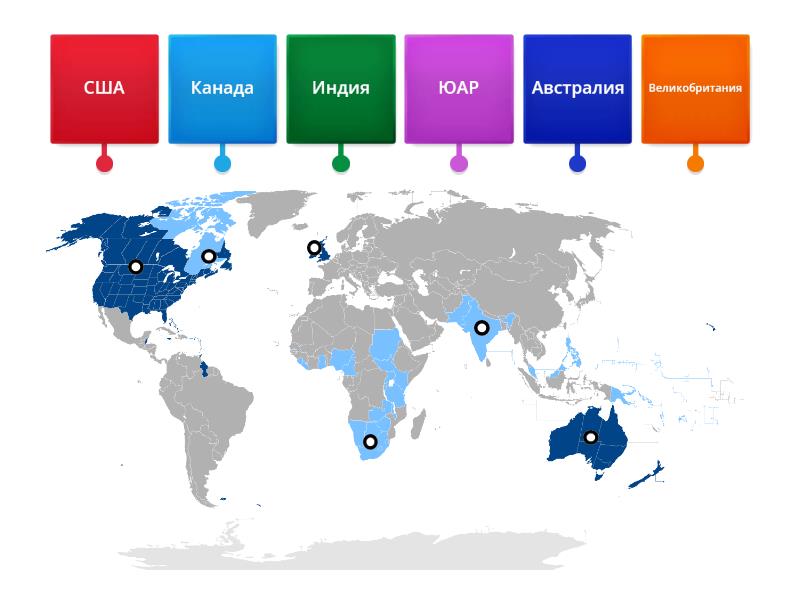 Канада, США, Великобритания, Индия, ЮАР, Австралия.