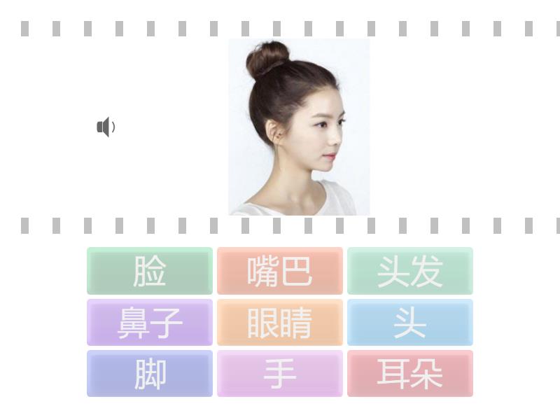 头, 耳朵, 眼睛, 脸, 手, 脚, 头发, 嘴巴, 鼻子,