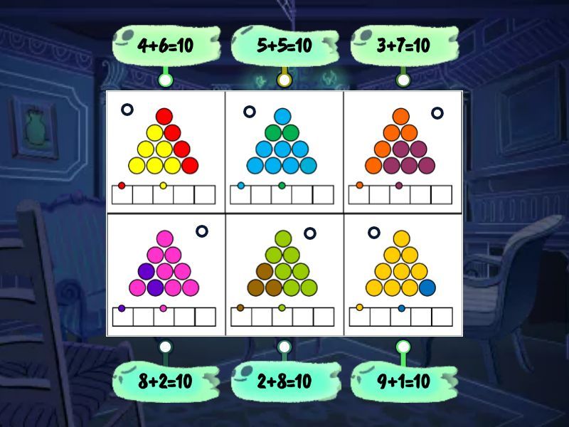 4+6=10, 8+2=10, 5+5=10, 2+8=10, 3+7=10, 9+1=10.