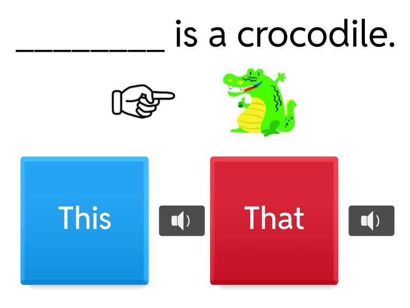 1) ________ is a crocodile. a) This b) That 2) ________ is a book. a) This b) That 3) ________ is a book. a) This b) That 4) ________ is an apple. a) This b) That 5) ________ is a cat. a) This b) That 6) ________ is a dog. a) This b) That 7) ________ is an elephant. a) This b) That 8) ________ is a fish. a) This b) That 9) ________ is a monkey. a) This b) That 10) ________ is a mouse. a) This b) That 11) __________ is an apple. a) This b) That 12) __________ is a doll. a) This b) That 13) ____________ is a ball. a) This b) That
