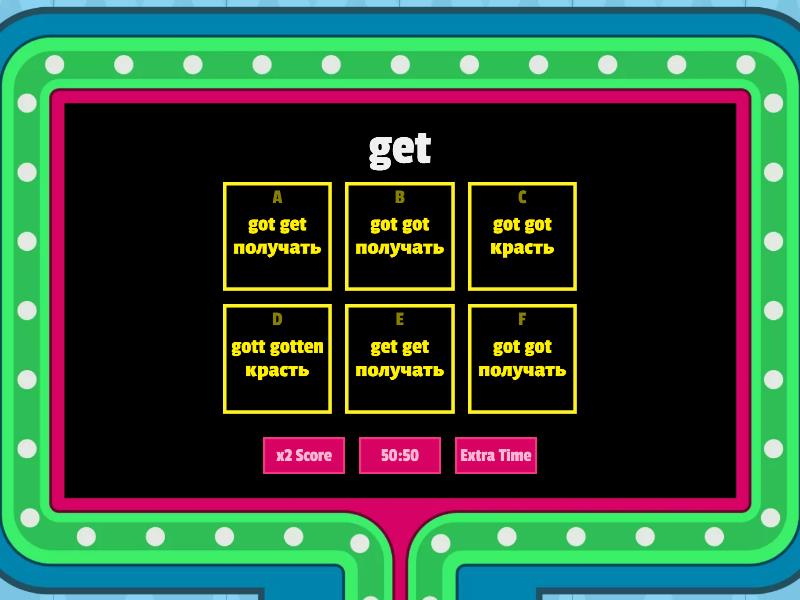 1) get a) got get получать b) got got получать c) got got красть d) gott gotten красть e) get get получать f) got got получать 2) wake a) wouk wouken будить b) woke woken будить c) wake wake будить d) woke woken разговаривать e) woke woke будить f) woke woken надевать 3) choose a) chose chosen разговаривать b) chose chose выбирать c) chose chosen забывать d) chose chosen выбирать e) chouse chousen выбирать f) chose chosen красть 4) steal a) stole stolen красть b) stolen stolen красть c) stole stolen одевать d) stole stolen получать e) stoul stoulen красть f) stole stole красть 5) forget a) forgot forgotten забывать b) forgotten forgotten забывать c) forgot forgotten разговаривать d) forgot forgotten одевать e) forget forget забывать f) forgot forgot забывать 6) speak a) spoke spoke разговаривать b) spouk spouken разговаривать c) spoke spoken одевать d) spoke spoken ломать e) spoken spoken разговаривать f) spoke spoken разговаривать 7) wear a) wear wear надевать b) wore worn надевать c) worn worn надевать d) wore wore надевать e) wore worn  красть f) wore worn получать 8) break a) break break (с)ломать b) broke broke надевать c) broken broken (с)ломать d) broke broken (с)ломать e) brouke brouken (с)ломать f) broke break  получать