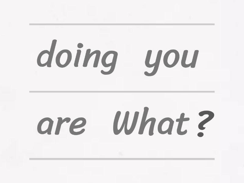 What are you doing?, Are you playing football?, What is she doing?, Is she riding a scooter?, What is he doing?, Is he playing computer games?, What are they doing?, Are they doing their homework?,