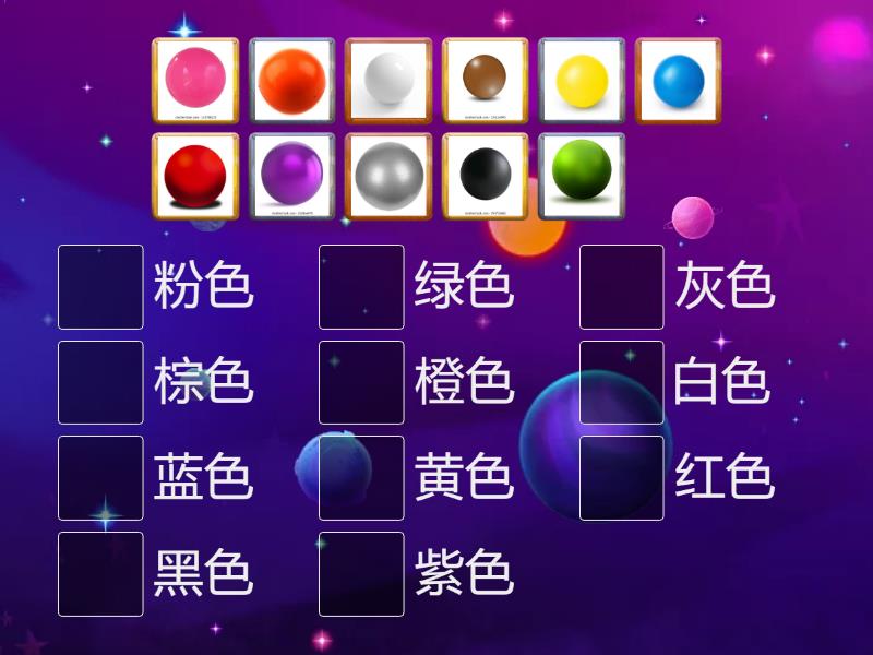 黄色, 红色, 绿色, 蓝色, 白色, 黑色, 橙色, 粉色, 紫色, 棕色, 灰色,