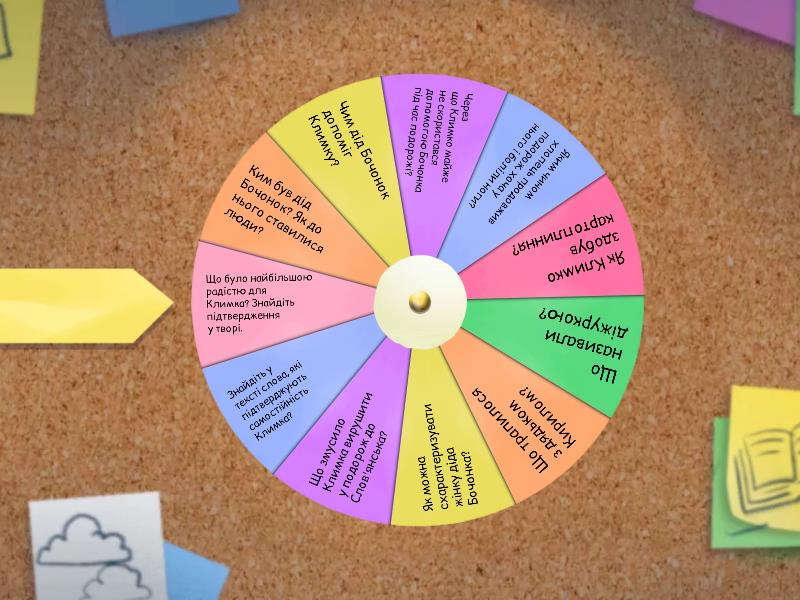 Ким був дід Бочонок? Як до нього ставилися люди?, Чим дід Бочонок допоміг Климку?, Через що Климко майже не скористався допомогою Бочонка під час подорожі?, Яким чином хлопець продовжив подорож, хоча у нього і боліли ноги?, Як Климко здобув картоплиння?, Що називали діжуркою?, Що трапилося з дядьком Кирилом?, Як можна схарактеризувати жінку діда Бочонка?, Що змусило Климка вирушити у подорож до Слов'янська?, Знайдіть у тексті слова, які підтверджують самостійність Климка?, Що було найбільшою радістю для Климка? Знайдіть підтвердження у творі..