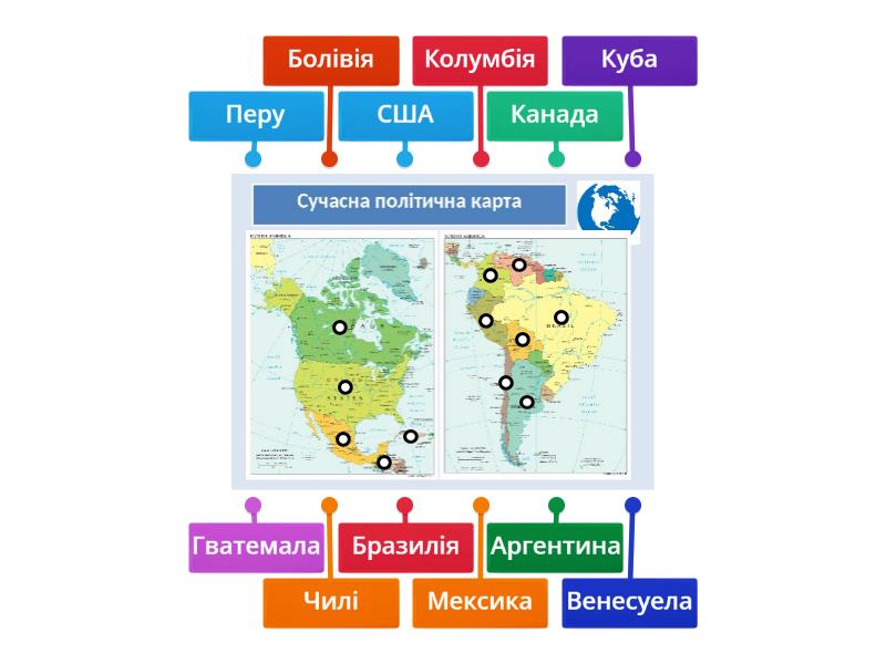 США, Бразилія, Мексика, Аргентина, Гватемала, Венесуела, Канада, Болівія, Куба, Перу, Колумбія, Чилі.