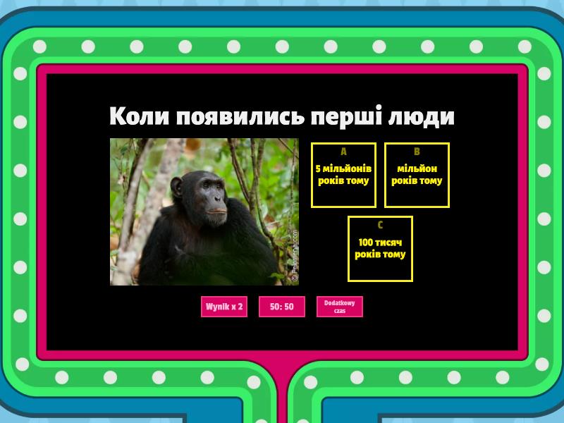1) Коли появились перші люди a) 5 мільйонів років тому b) мільйон років тому c) 100 тисяч років тому 2) яку назву має ця людина a) неандерталець b) кроманйонець c) архантроп 3) який винахід людей був перший a) рубило b) телефон c) пістолет glock 18 4) що їли неандертальці - кроманйонці в льодовий період a) фрукти й овочі b) ковбасу c) м'ясо 5) що це a) сокира b) яблуко c) вася 228 6) хто був першим князєм русі України a) Кий b) володимир великий 7) хто утворив Козацьку січ a) Володимир Вишневецький (Байда) b) Кий c) Щек 8) в якому році була битва на річці Калка a) 1876 b) 1914 c) 1253 d) 214 e) 1425 f) 1223