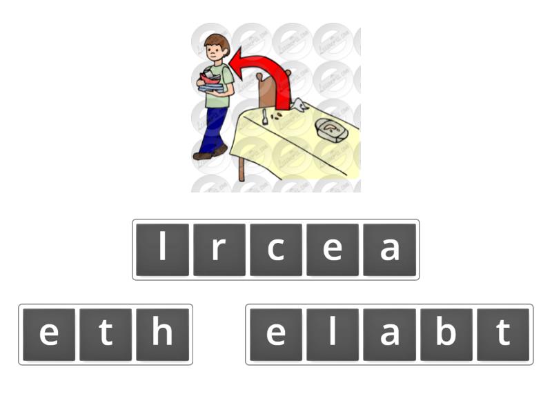 clear the table , empty the dishwasher , feed the dog, hang out the washing, iron your T-shirt , load the dishwasher , load the washing machine , make your bed, put away your clothes , set the table , take out the rubbish , vacuum your room , water the plants,