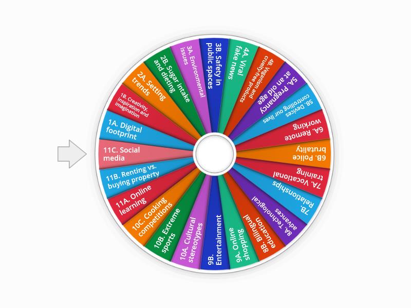 1A. Digital footprint, 1B. Creativity, inspiration and imagination, 2A. Setting trends, 2B. Sugar intake and dieting, 3A. Environmental issues, 3B. Safety in public spaces, 4A. Viral fake news, 4B. Veganism and cruelty-free products, 5A. Pregnancy at an old age, 5B. Devices controlling our lives, 6A. Remote working, 6B. Police brutality, 7A. Vocational training, 7B. Relationships, 8A. Technological advances, 8B. Bilingual education, 9A. Online shopping, 9B. Entertainment, 10A. Cultural stereotypes, 10B. Extreme sports, 10C. Cooking competitions, 11A. Online learning, 11B. Renting vs. buying property, 11C. Social media.