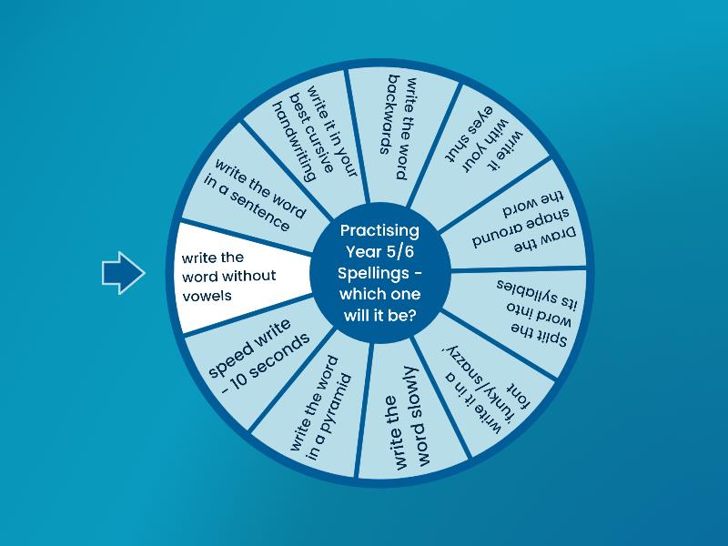 1) speed write - 10 seconds 2) write the word backwards 3) write it with your eyes shut 4) write the word slowly 5) write it in a 'funky/snazzy' font 6) write it in your best cursive handwriting 7) write the word in a pyramid 8) write the word without vowels 9) write the word in a sentence  10) Split the word into its syllables  11) Draw the shape around the word