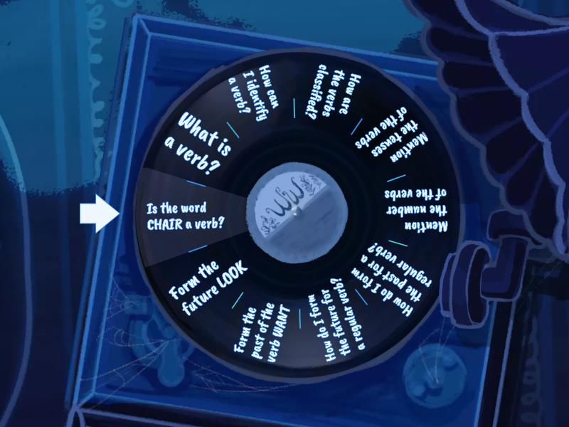 What is a verb?, How can I identify a verb?, How are the verbs classified?, Mention the tenses of the verbs, Mention the number of the verbs, How do I form the past for a regular verb?, How do I form the future for a regular verb?, Form the past of the verb WANT, Form the future LOOK, Is the word CHAIR a verb?.